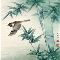 竹子有着一根笔挺挺的、昂头挺胸的长竿。它的长竿是一节节的,像一根深黄色的大炮仗似的,用手使劲拍几下倒把手掌拍得红彤彤的。细细的枝条上长着许多锋利的剑形叶子,阳光洒在每一片竹叶上,竹叶会变得亮闪闪的;一阵微风拂过,竹子优美地摇晃着它的“双臂”,仿佛在拥抱着我。将竹叶捏成“一”字形轻轻地抿在嘴里,缓缓地往外吹气,它就会发出清脆响亮的声音。
