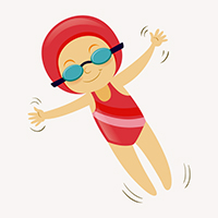 孩子们穿着漂浮衣穿梭,