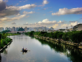 上作文班时,必要经过南塘街——一条临河而建的街。这里有宁静的公园,还有繁华的市场,去买吃的时,我也会去南塘街走一趟,饱饱眼福。