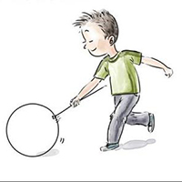 没过多久,只见爸爸就抱着一副铁环和一个陀螺向我跑来,一边跑还一边说:“过来,到这边来,我来教你滚铁环。”说着,他把陀螺交给我,然后把铁环立直,用铁钩轻轻地勾住铁环,再用手轻轻一推铁环,铁环便开始滚动。爸爸先绕着操场跑了两圈。然后用铁钩提起铁环,让我也来试一下。刚开始,我还有一些不熟练,常常把铁环滚到一旁的草丛中,经过多次尝试后,渐渐地我能带着铁环绕着整个小区跑。