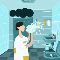 洗澡的时候,我先把喷头拿出来调温度,再把水冲在身上,感觉跟泡温泉一样舒服。到了抹泡沫时间,先玩一下吹泡泡,挤出泡沫搓一搓,用左手摆出一个圆圈,然后嘴巴轻轻地吹一下,“哇——”泡泡出来了,我就这样吹出了好多泡泡,浴室里像仙境一样,美丽极了!