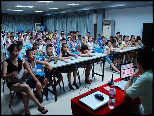 温州作文网主编沈楚老师2008年8月3日晚上应温州书城邀请为小读者们做“少儿启蒙”讲座。沈楚老师推崇的“自由、个性、创新”作文理念给现场的小读者们带来了思想上的解放。 这是沈楚老师连续第三年应邀在温州书城开作文讲座