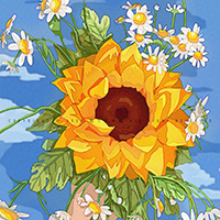 我先给一朵向日葵加上了一双眼睛,它瞬间有了“生命”。它在对我说“你看我多美丽呀,快给我拍张照发朋友圈吧!不过,不要踩我,我会疼的。”