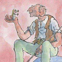 我又很喜爱好心眼儿巨人的幽默,当他在喝那汽泡朝下汽水时,忽然一下子冲上了天,令我哭笑不得;当我看见他看着在他手中如蚂蚁一般大小的单词书断断续续地读,有时还会读错时,我笑得上气不接下气,好像好心眼儿巨人就在眼前一样。在读到他和女王讲话的时候不小心说了一句让人类听上去粗鲁的话时,我有些紧张,怕女王会生气。