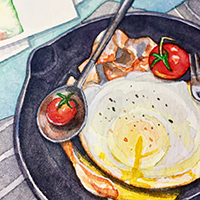 奶奶帮我把鸡蛋敲开一点点,接着我把鸡蛋打进锅里,煎一会儿,我用筷子把鸡蛋翻过来,最后我把鸡蛋夹进盘子里,再加一点酱油,就完成了!