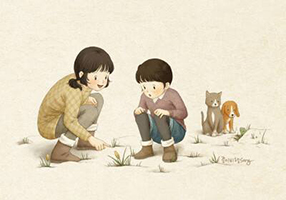 我要给小金鱼一个名字,叫小黑点,它的尾巴上有一个黑点,记着这个名这样能迅速在鱼群中找到它。