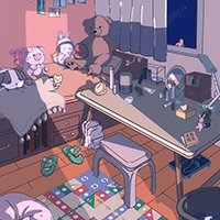房间的最右边有一张小床,在它的左边有一个四层的柜子,其中一个是我用来放玩具的。我妈怎么也不会想到在我的玩具中也有钱!机器人的帽子,手办的身子等都藏有钱,总之,只有你想不到没有我办不到的。