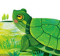 我的画画老师送了我一只乌龟,只要我一放学,我就和乌龟一起玩,不知不觉我们就成了好朋友。 只要乌龟一探出头,就表示它饿了,好像在对我说:“有好吃的吗?”我说:“那我给你龟食。” 只要乌龟一下水,就表示它饱了。我说:“饱了吗?”它跟我挥挥手脚,快乐地潜入水里了。