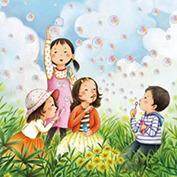 我和他一起做游戏,一起喝下午茶。