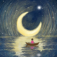 我想去月亮上,我想找到爷爷和小狗,希望他们在月亮上等我。