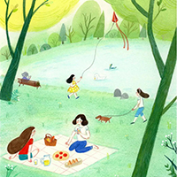 画完之后放哪呢?有啦,就装起来放到床头吧。我要给它取名为“公园慢生活”。这样看到它时能提醒自己,在快节奏的生活里,别忘了放下脚步,去享受慢一拍的生活,给自己一份宁静的心灵空间。