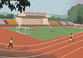 我去上体育课时,发现操场翻新了呢!操场上铺了新的跑道,更显眼的是碎石头铺了起来,跑起来比原来的更舒服了!