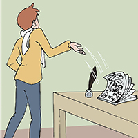 我的笔丢了,因为当时我在排队等老师改作业本,所以都没察觉。回来时,我发现笔不见了,四处找也没找到,只好失落地向别人借了一支。下课了,我走到讲台旁,竟然看见了我的那支笔!我拿起笔,兴奋地回到了座位。