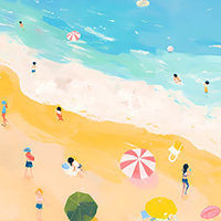 暑假里,爸爸、妈妈和姐姐带我去沙滩玩,我踩在沙子上,感觉沙沙的、刺刺的,我觉得脚底下很舒服。