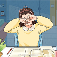 过了一会儿,下课了,我看见后桌一直在揉眼睛、打哈欠。不戴眼镜,人会更容易打哈欠吗?我就问她:“后桌,你是不是早上也没睡好,所以一直打哈欠呀?”后桌肯定地说:“确实没睡好,但要是再不起来,就该迟到了!”后来我们就没再聊这个话题了。