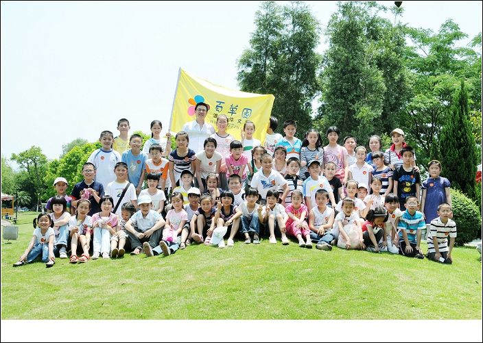 温州作文网百草园文学塾亲子游活动2009年5月29日在江心西园举行 我们在草地上集合 我们都爱百草园