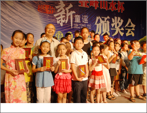 2009年8月29日,温州市首届新童谣征文大赛颁奖会在育英大礼堂举行,温州作文网百草园文学塾8位小学员获奖。温州作文网创始人沈洪保教授担任颁奖嘉宾,并现场讲解温州童谣的发展变化。 沈洪保教授给孩子们颁奖 温州市文联副主席金文平向孩子们表示祝贺 沈力诺现场朗诵 吴丹现场朗诵 陈周熠现场朗诵 张琳以现场朗诵