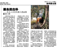 沈楚老师随笔《逝去的古朴》温州都市报发表
