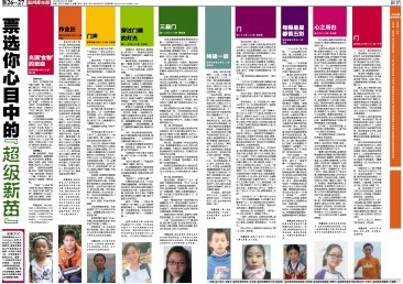 童联社温州作文网百草园文学塾石坦巷小学五年级学员邹超逸经初赛复赛,过关斩将,入选温州都市报新苗版2009年度“超级新苗”十强,温州都市报2010年2月22日刊登。(下图蓝衣少男)