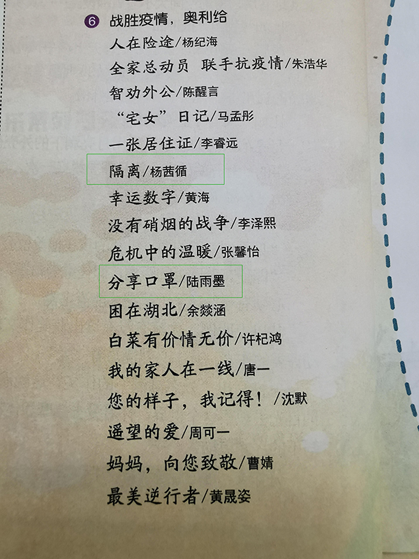 汪皓晨作品发表《快乐作文与阅读》