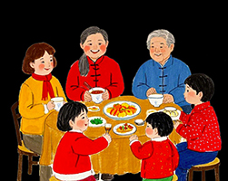 第一天,我满怀期待地“守”在饭桌旁,就等着一上菜就入座。一年没见的大姨笑着朝我打招呼,四年未曾谋面的舅舅也回来了,我差点没认出他来。大姨送了我几条萨拉米,舅舅则给了我一盒巧克力,还笑着问我:“现在几岁啦?”